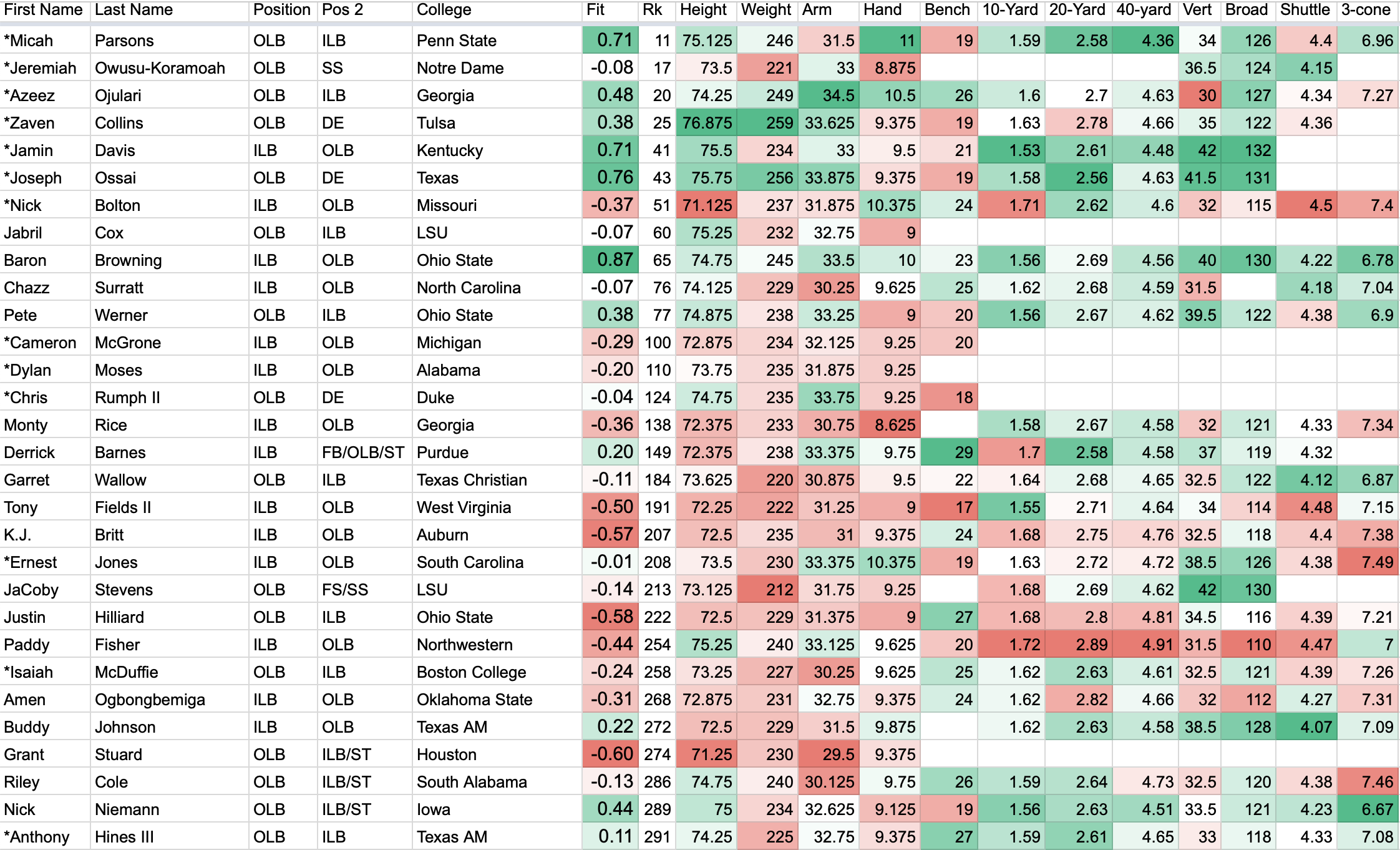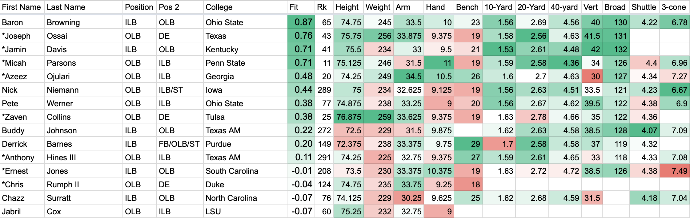 We devised a metric to rate each 2021 NFL Draft prospect’s fit in New England. Here's this year's crop of linebackers sorted by Arif Hasan of The Athletic's composite draft rankings. We included edge defenders Azeez Ojulari, Joseph Ossai and Chris Rumph II because of their size.