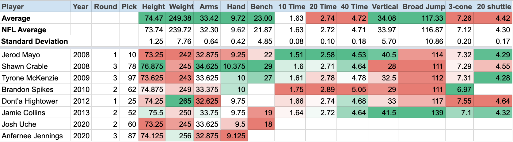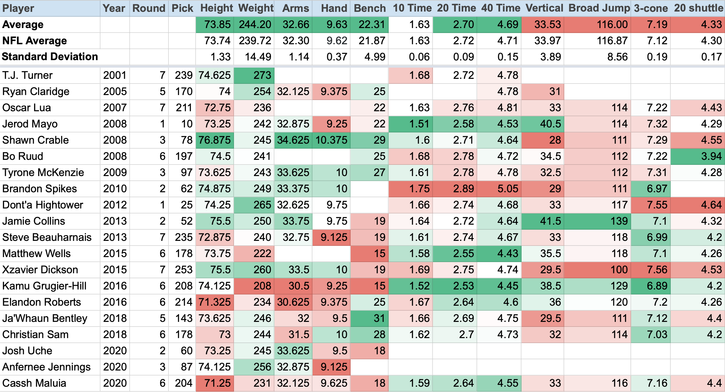 If you narrow that list down to only linebacker drafted in the first, second or third round, then the average height grows to 6-foot-2 1/2-inch, and the weight balloons to 249.4 pounds.