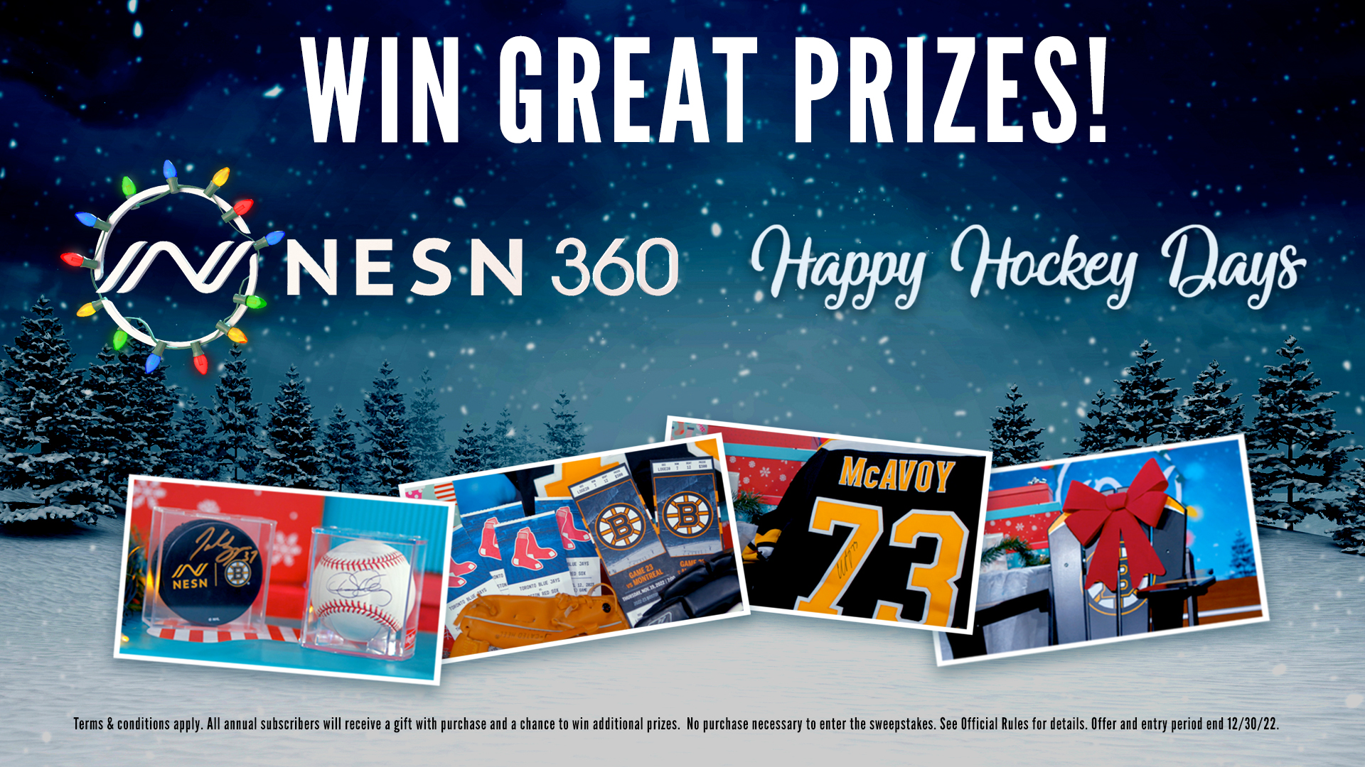 In honor of the holiday season, NESN celebrates "Happy Hockey Days" and will randomly select 12 lucky annual subscribers in the month of December to win great prizes.