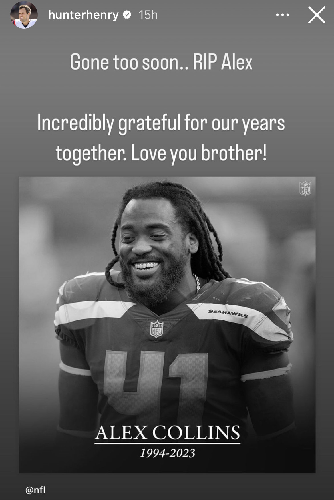 Shortly after the news broke Monday, the New England tight end used Instagram to pay tribute to his late former teammate.