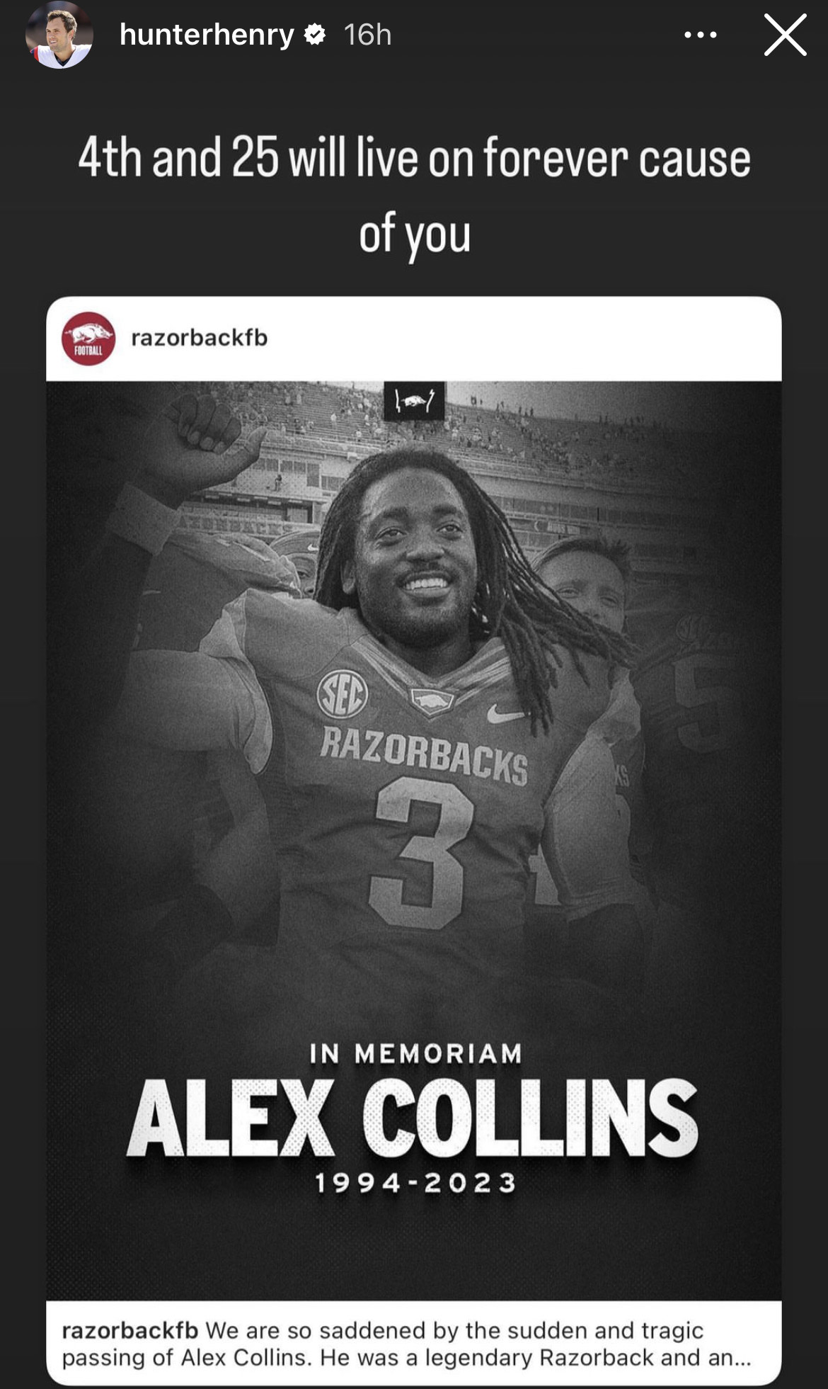 Henry shared a bond with Collins, a fellow 2016 draft pick. The pair spent all three of their collegiate football years together at Arkansas and helped lead the Razorbacks to a pair of bowl games.