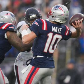 Drake Maye has gotten sacked 10 times and lost three of six fumbles this postseason. An executive pointed to pocket pressure as the key to Denver pulling off an upset, but they identified ways offensive coordinator Josh McDaniels can help Maye avoid hits.