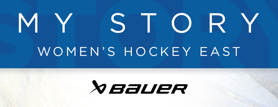 The My Story: Women’s Hockey East digital series, presented by Bauer, showcases the journeys of four collegiate hockey players, shared in their own words. From their early days of learning the game, to hitting the ice for their current teams, each player chronicles the story of the unique path that led to them the rinks of New England.